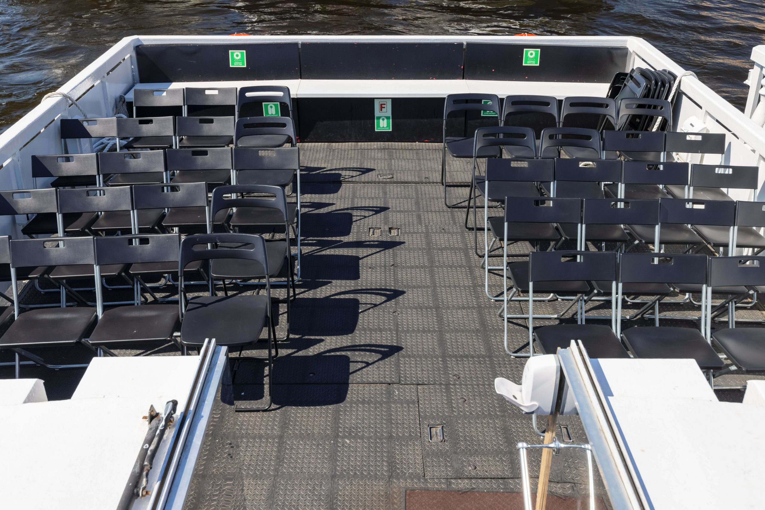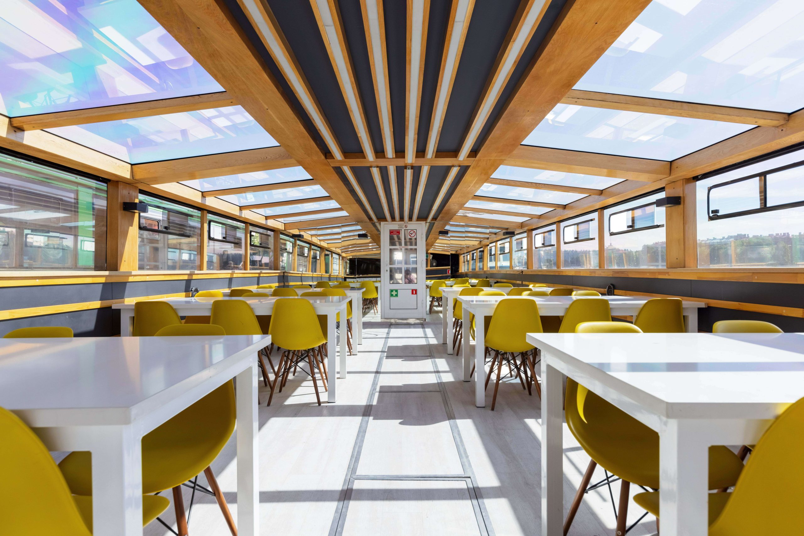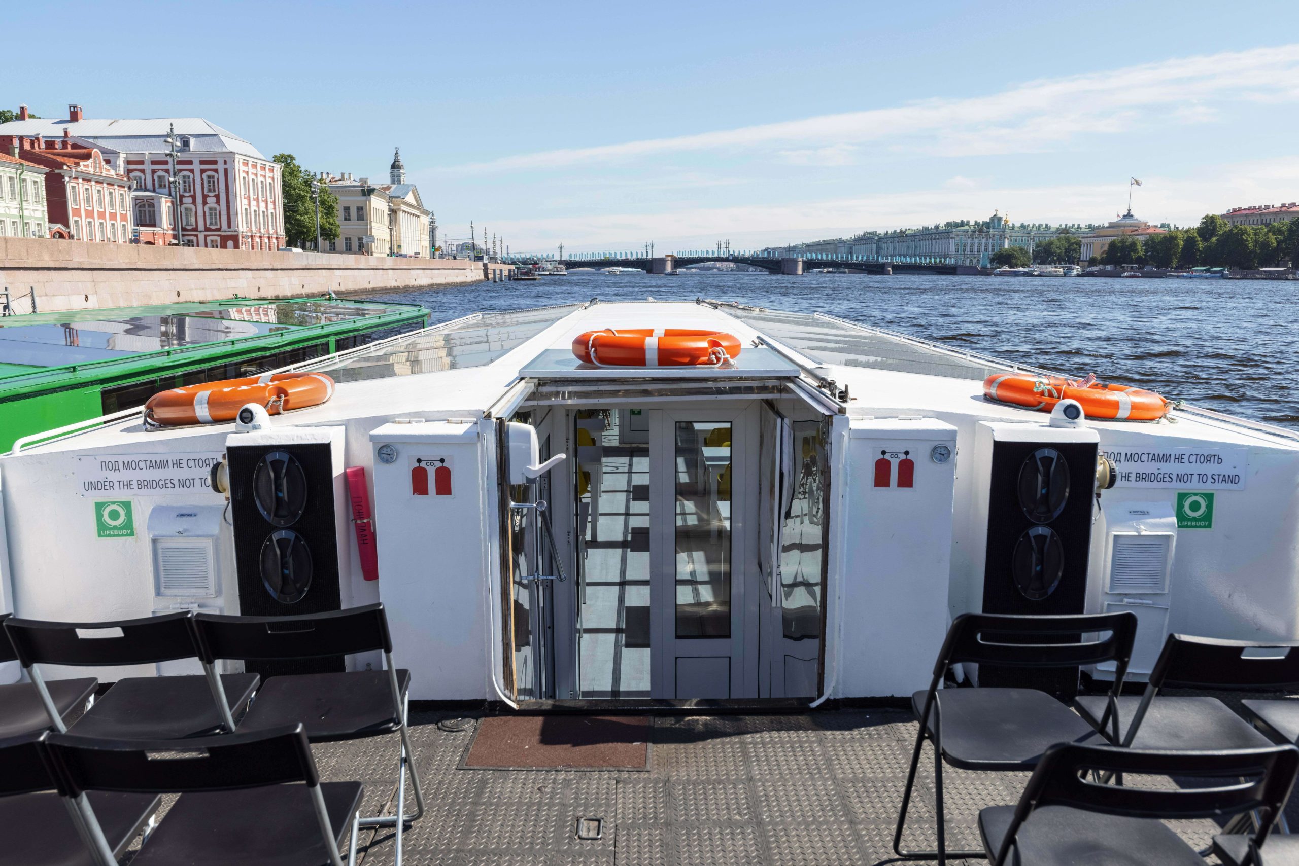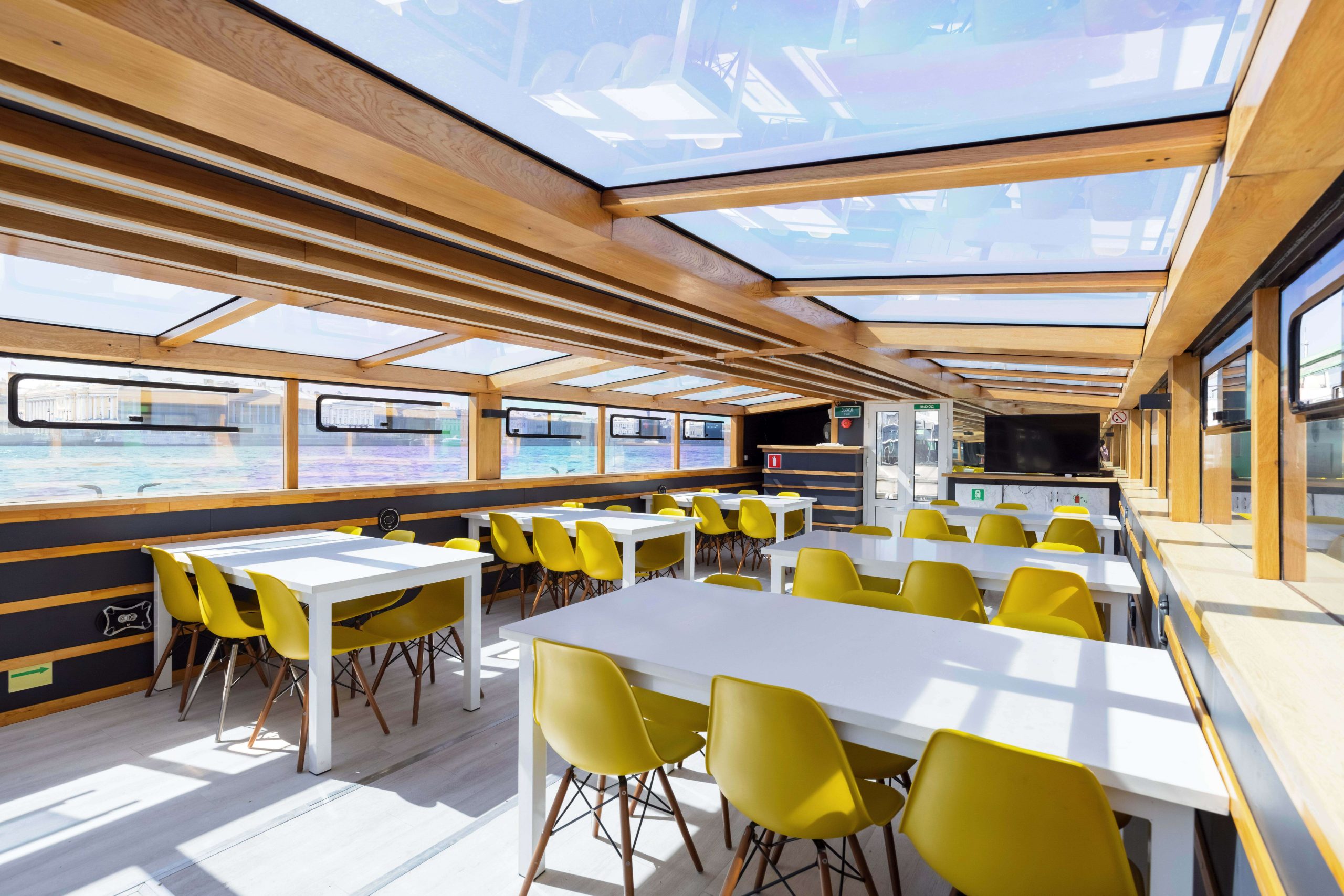 Формат для банкетов, свадеб, корпоративов и прогулок по Неве с комфортной посадкой большой компании. Из важных опций чаще всего выбирают санузел и столик.