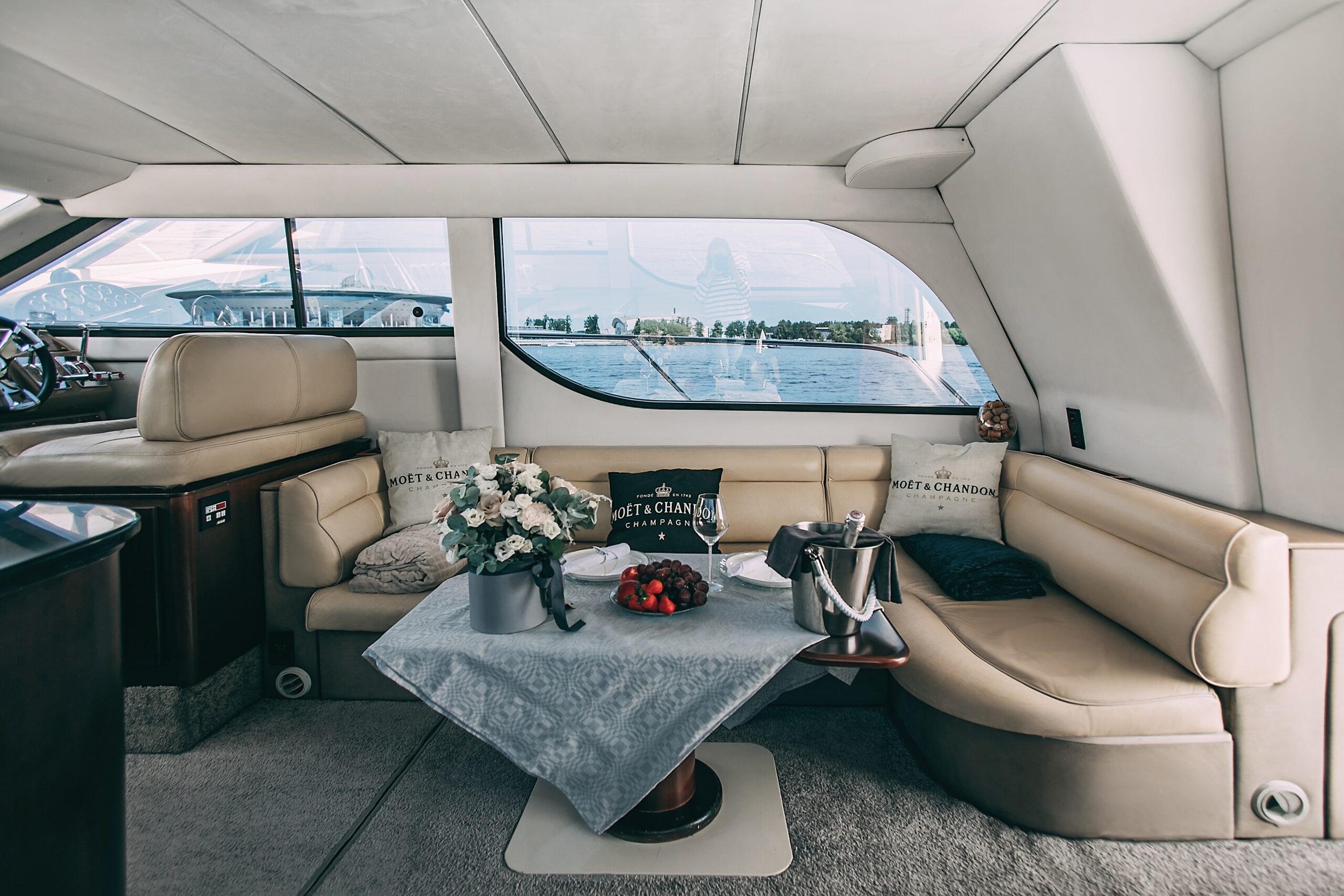 Спокойный приватный формат для вечернего выхода, ужина на воде и маршрута в сторону Финского залива. На борту предусмотрено 3 каюты, что удобнее для длительного выхода и подготовки к мероприятию.