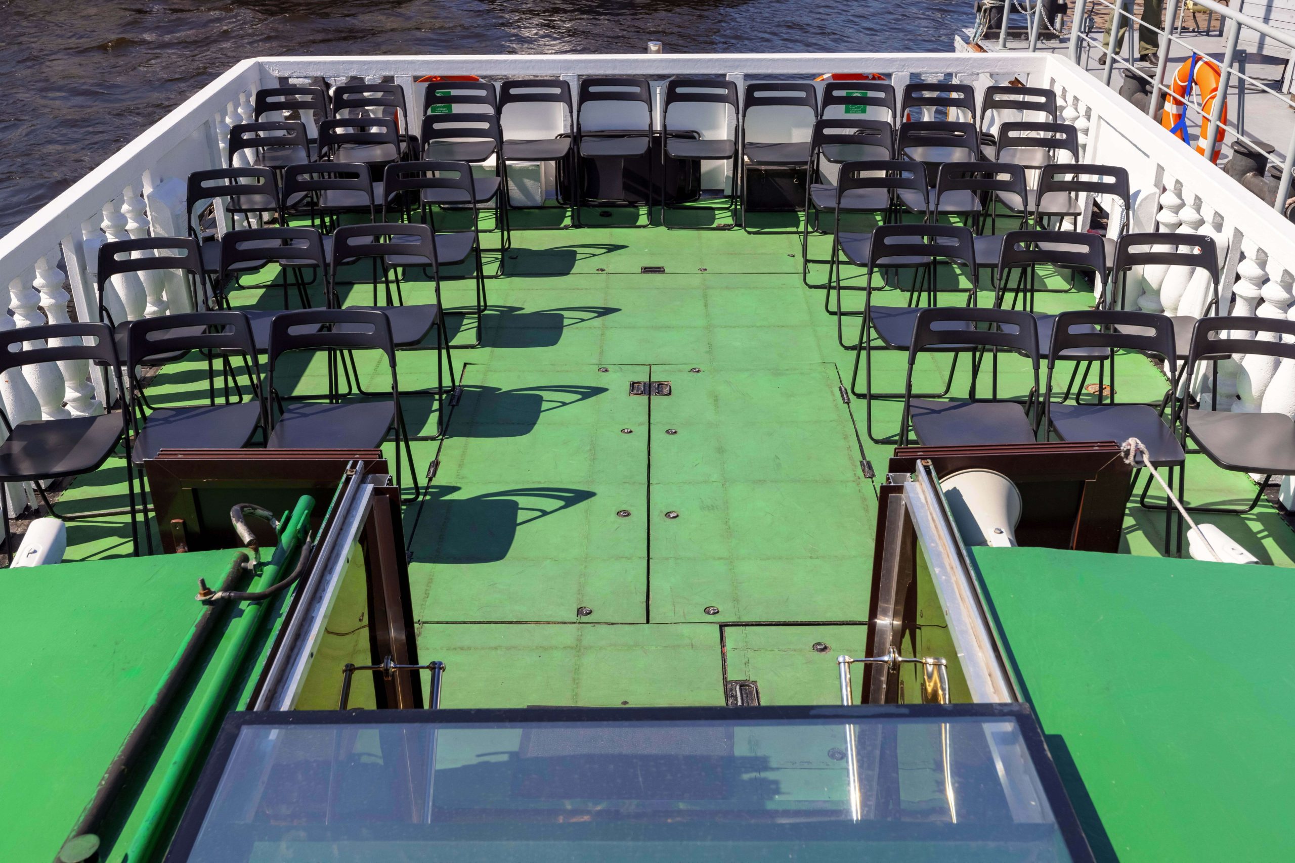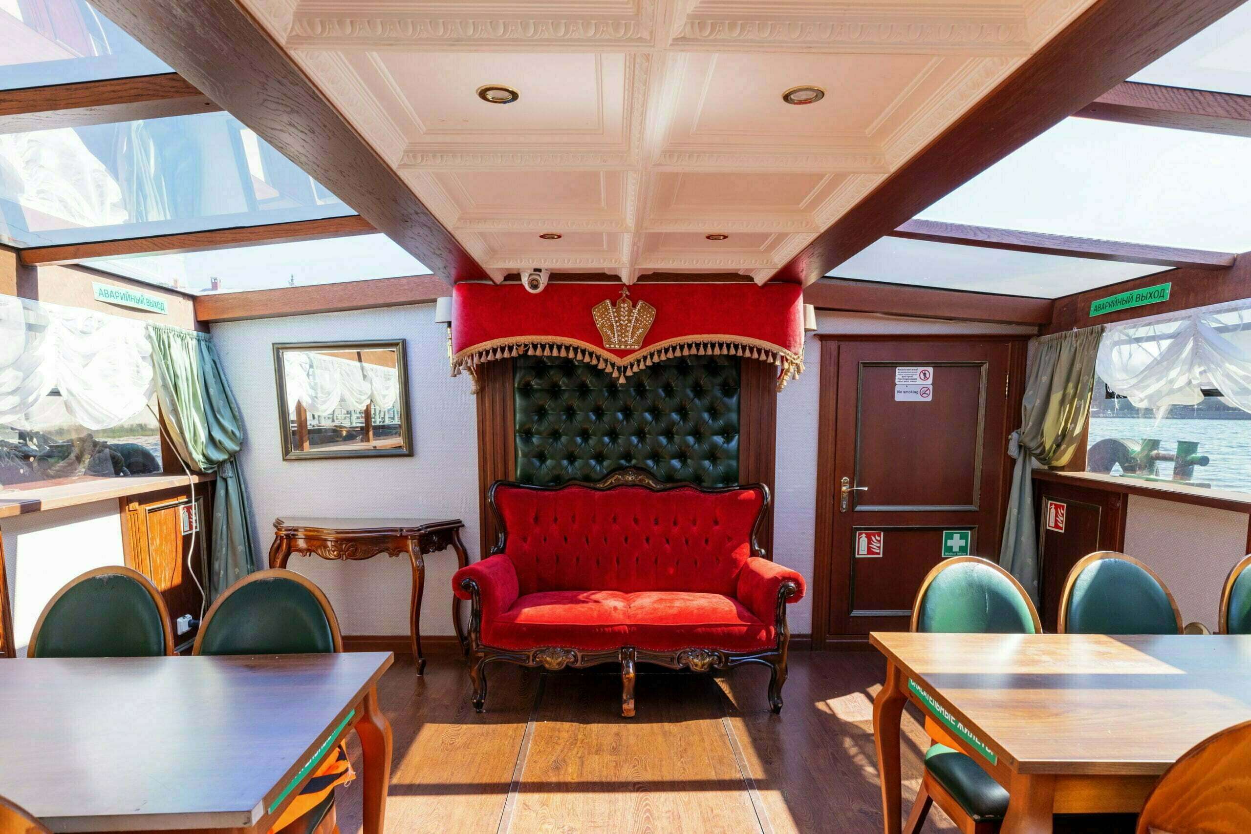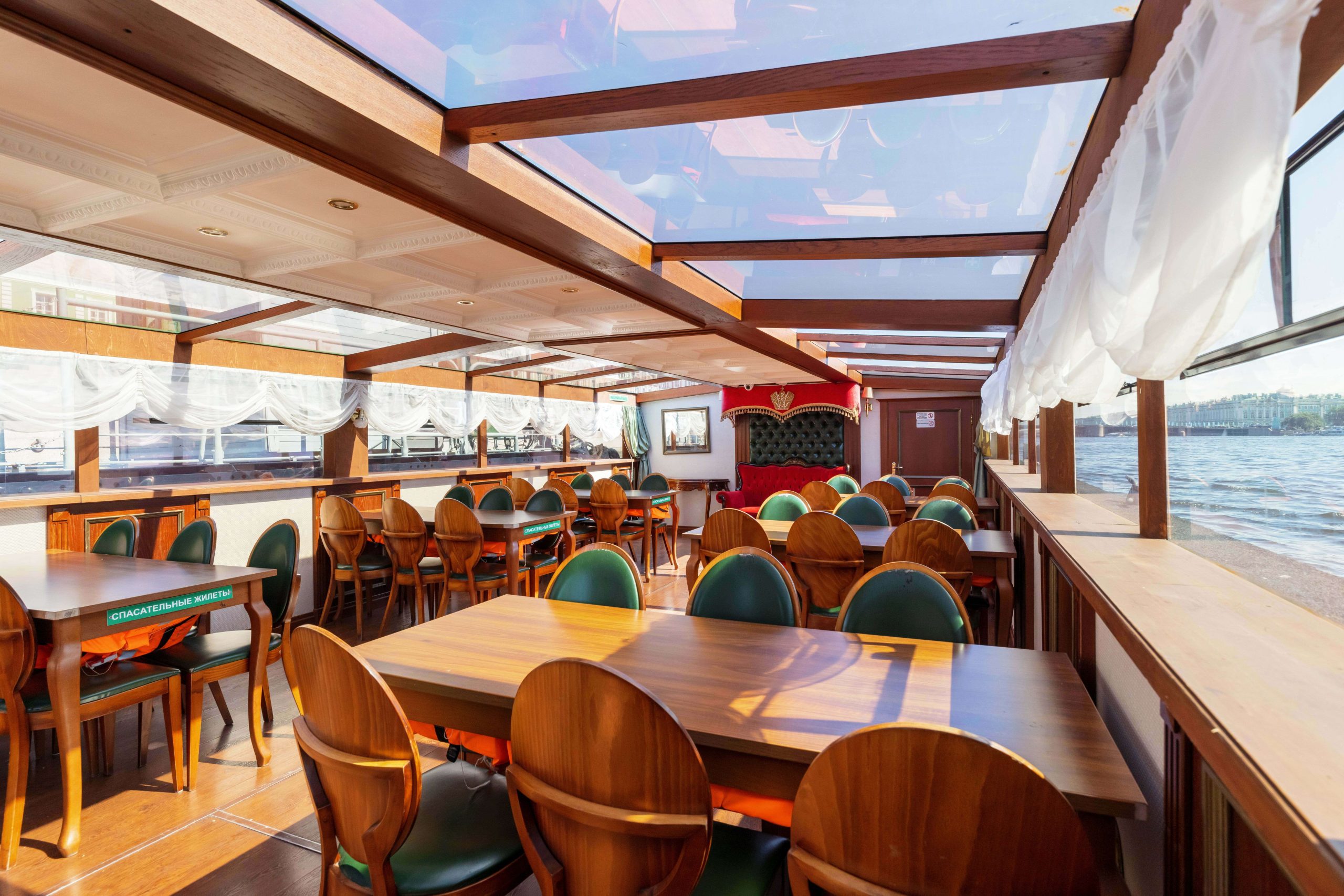 Формат для банкетов, свадеб, корпоративов и прогулок по Неве с комфортной посадкой большой компании. Из важных опций чаще всего выбирают санузел и столик.