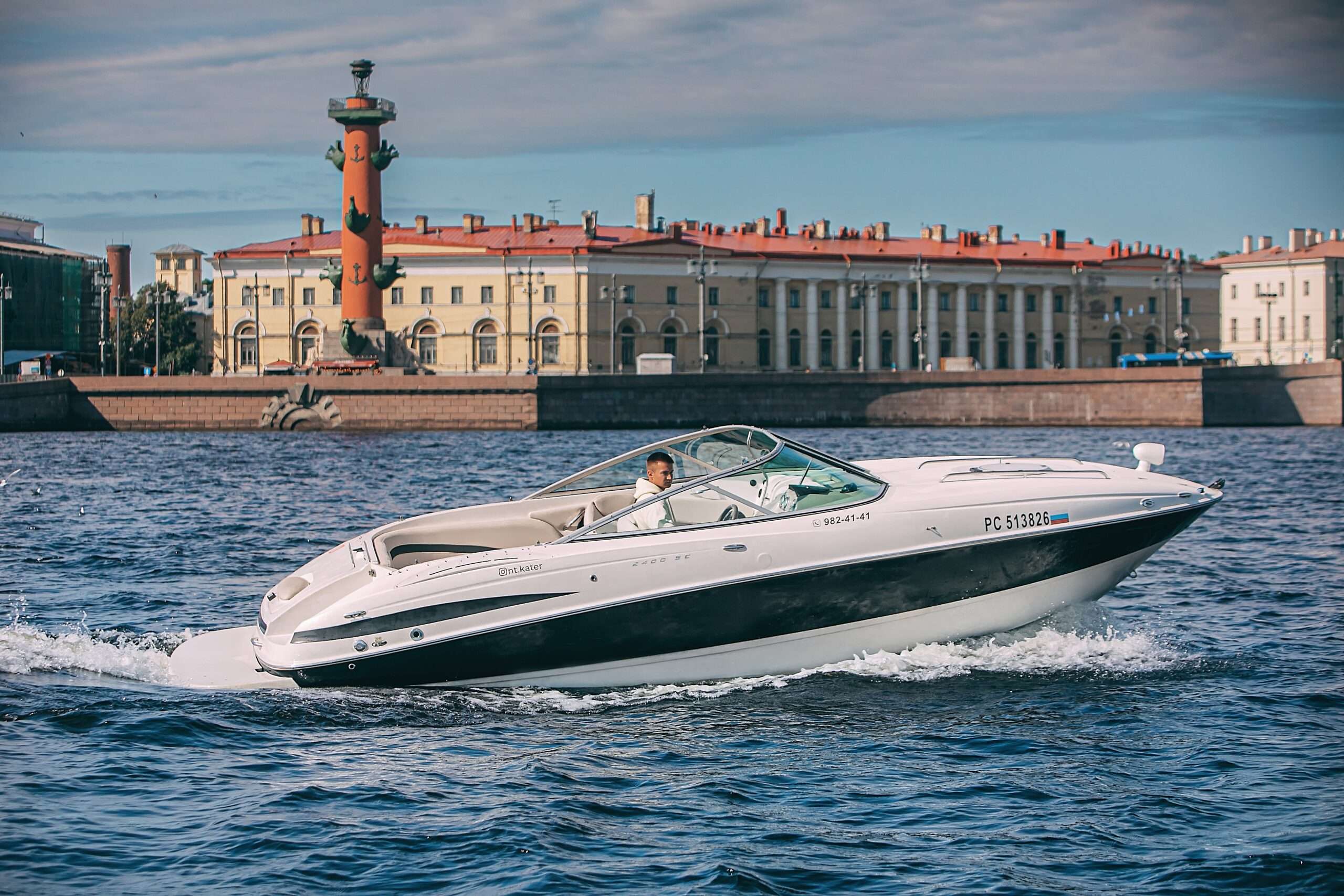 • Катер Maxum 2400 SC выбирают для камерных прогулок, романтических выходов, фотосессий и индивидуальных маршрутов по Неве и каналам.