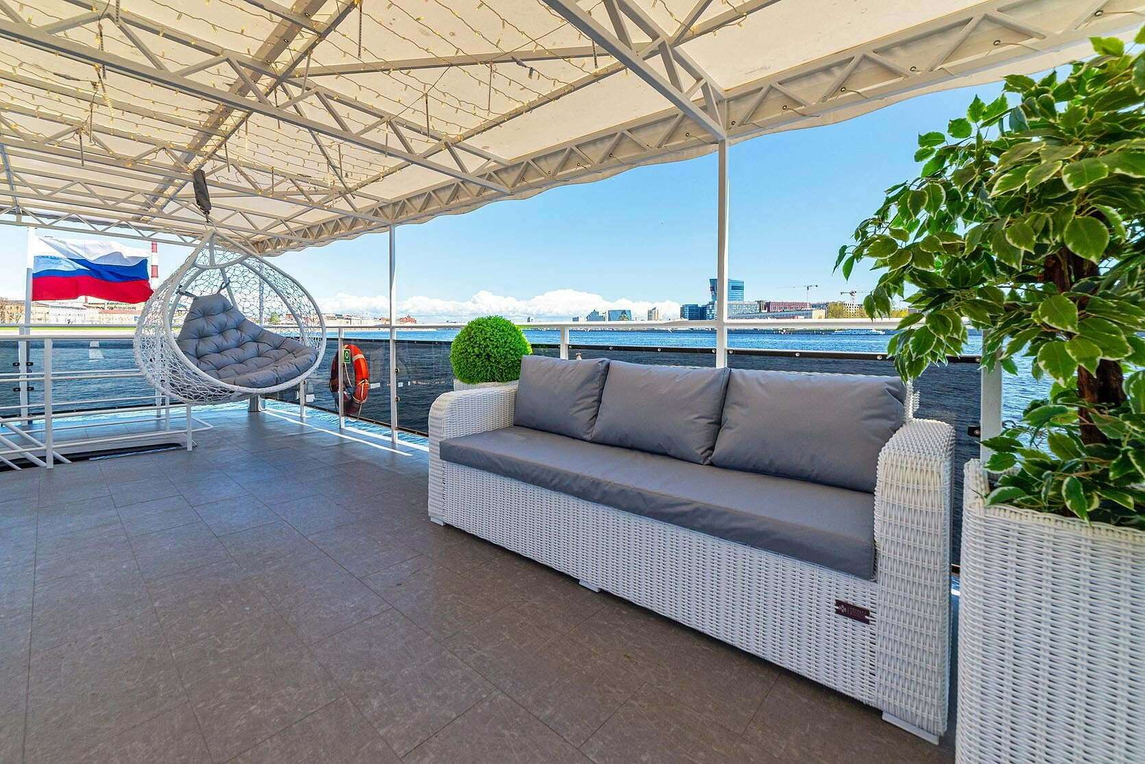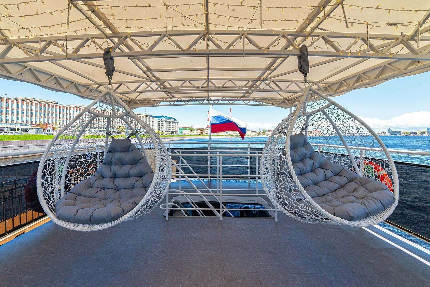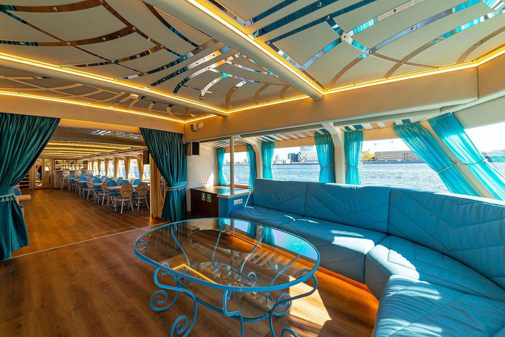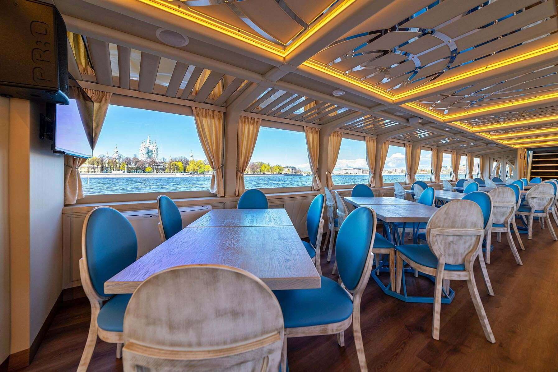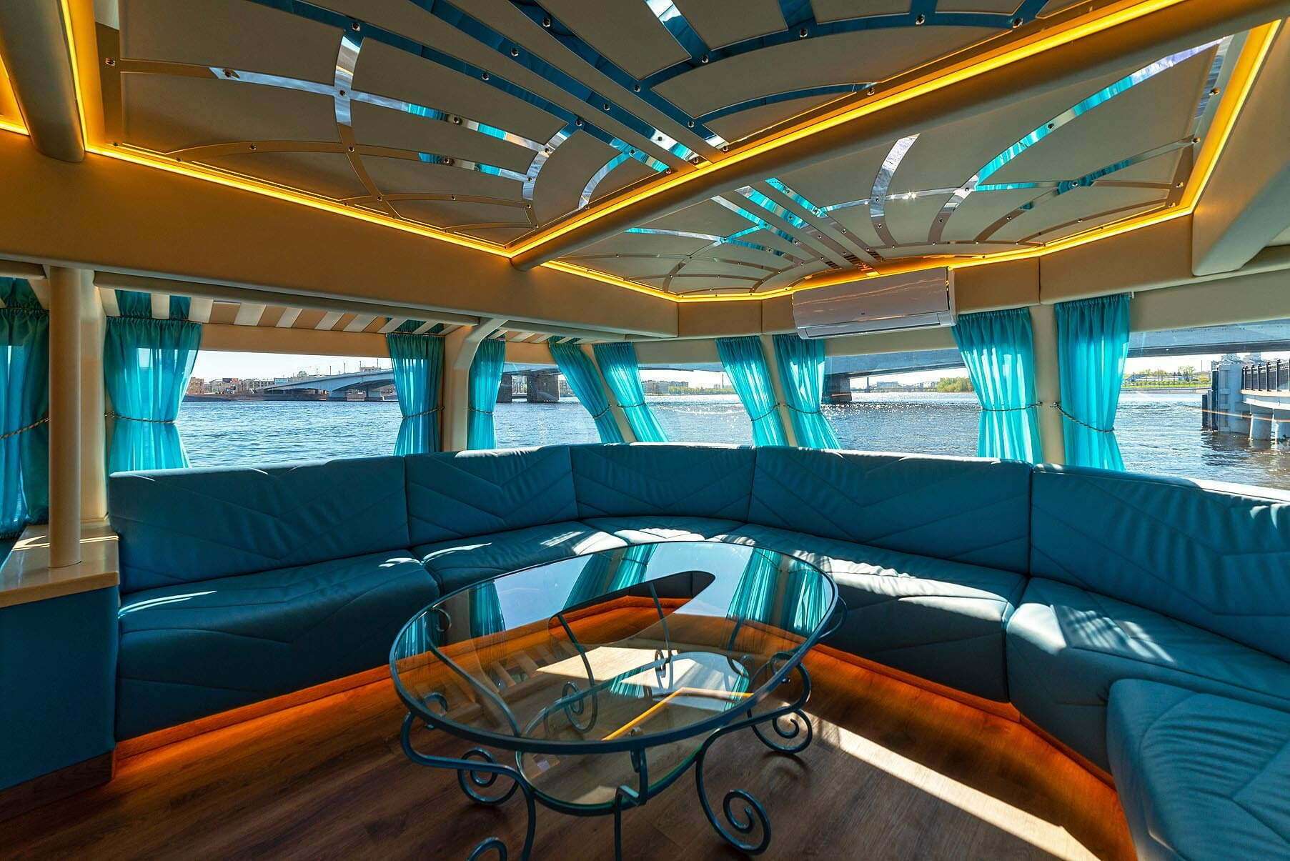 Формат для банкетов, свадеб, корпоративов и прогулок по Неве с комфортной посадкой большой компании. Из важных опций чаще всего выбирают санузел и столик.