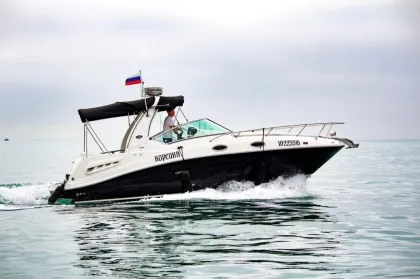 Комфортный катер для семейной прогулки, дня рождения или камерного события на воде в Сочи. Корпус 24 ft дает более спокойную посадку и комфортную палубную зону.
