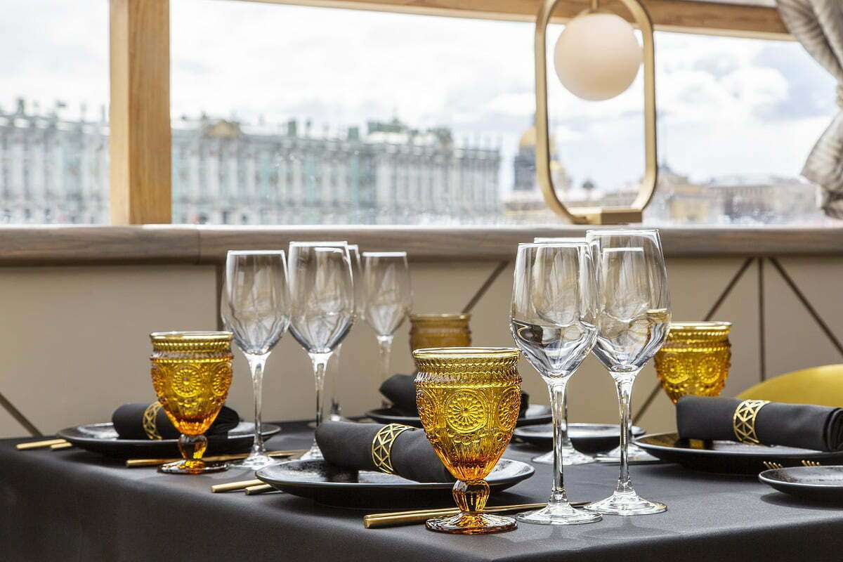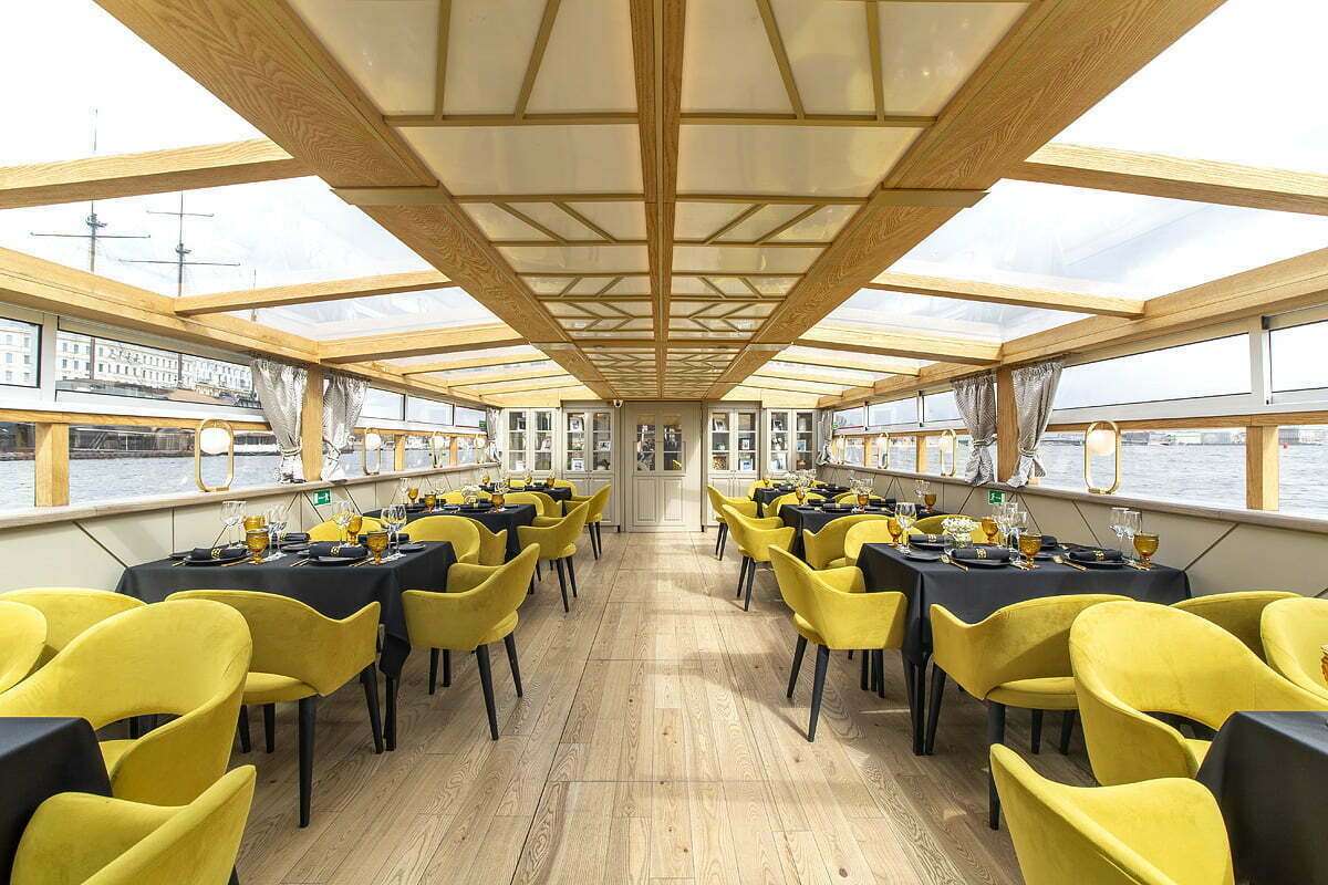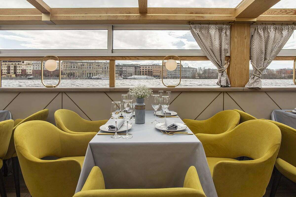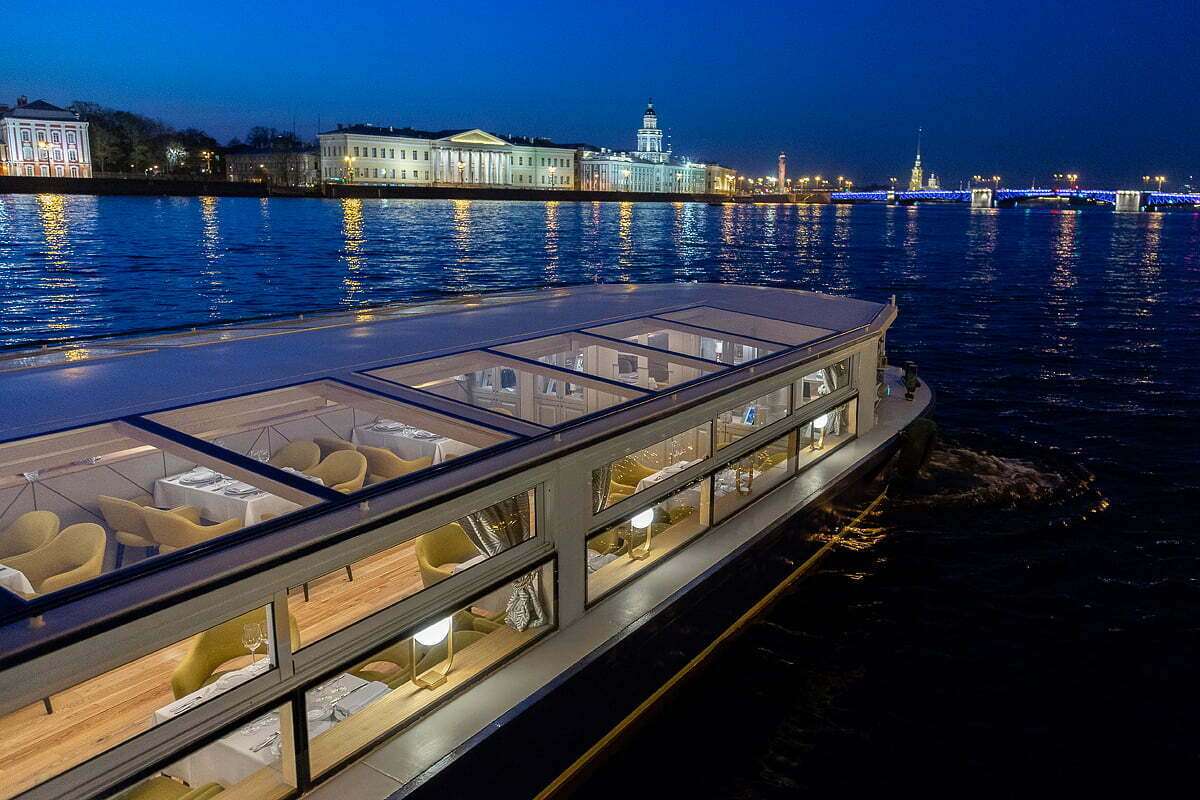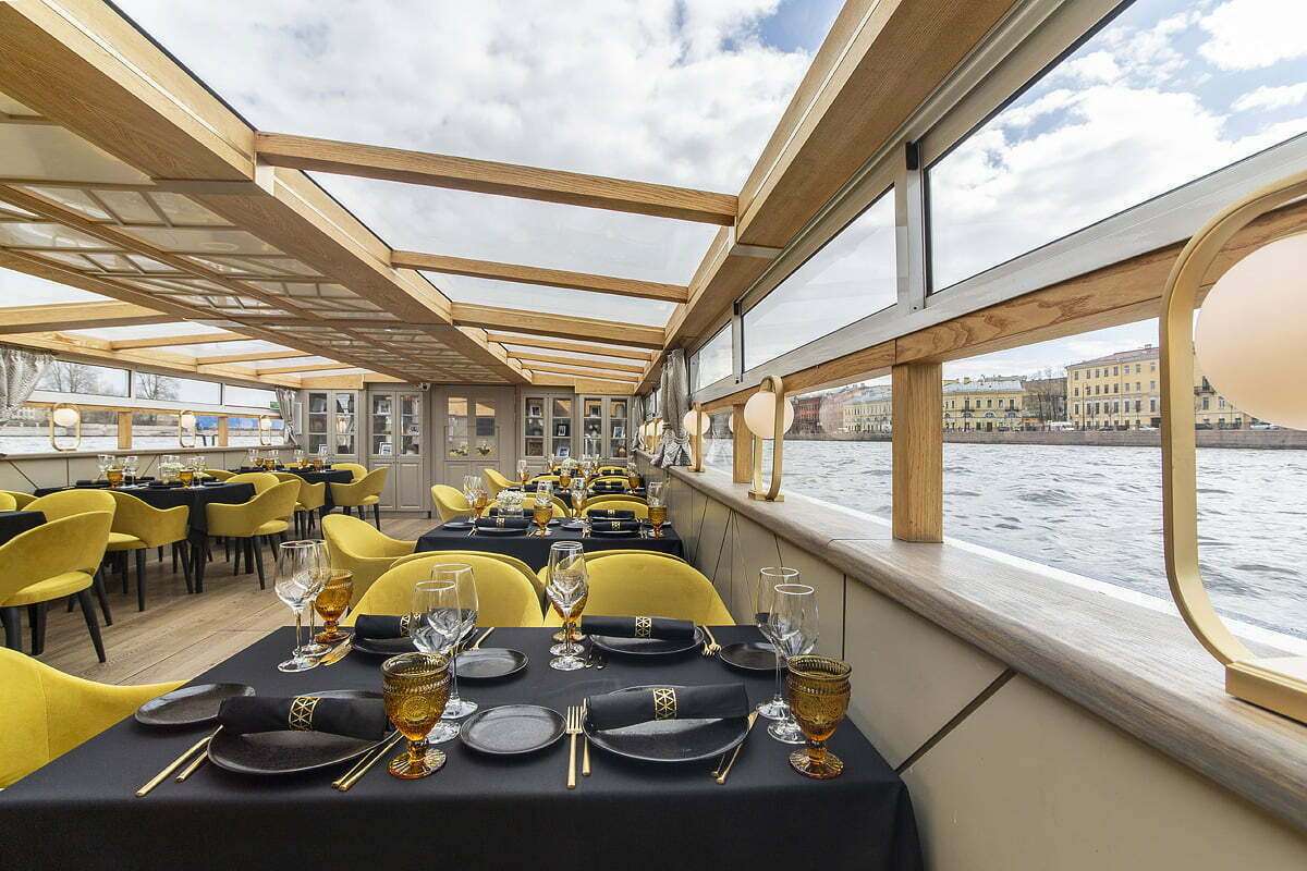 Формат для банкетов, свадеб, корпоративов и прогулок по Неве с комфортной посадкой большой компании. Из важных опций чаще всего выбирают санузел и столик.