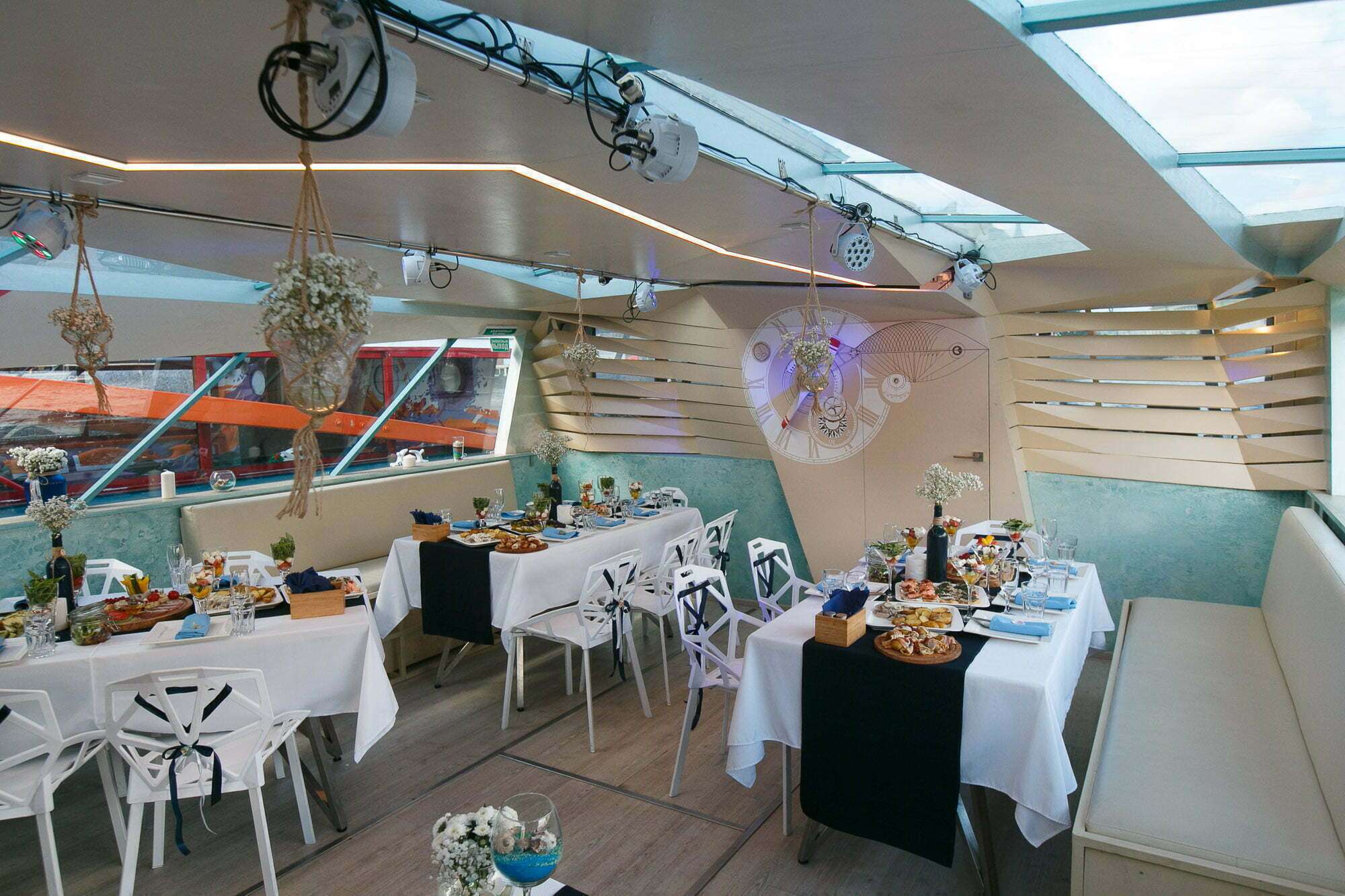 • Теплоход "Цеппелин" подходит для свадеб, корпоративов, юбилеев и банкетных программ на воде с комфортной посадкой большой компании.