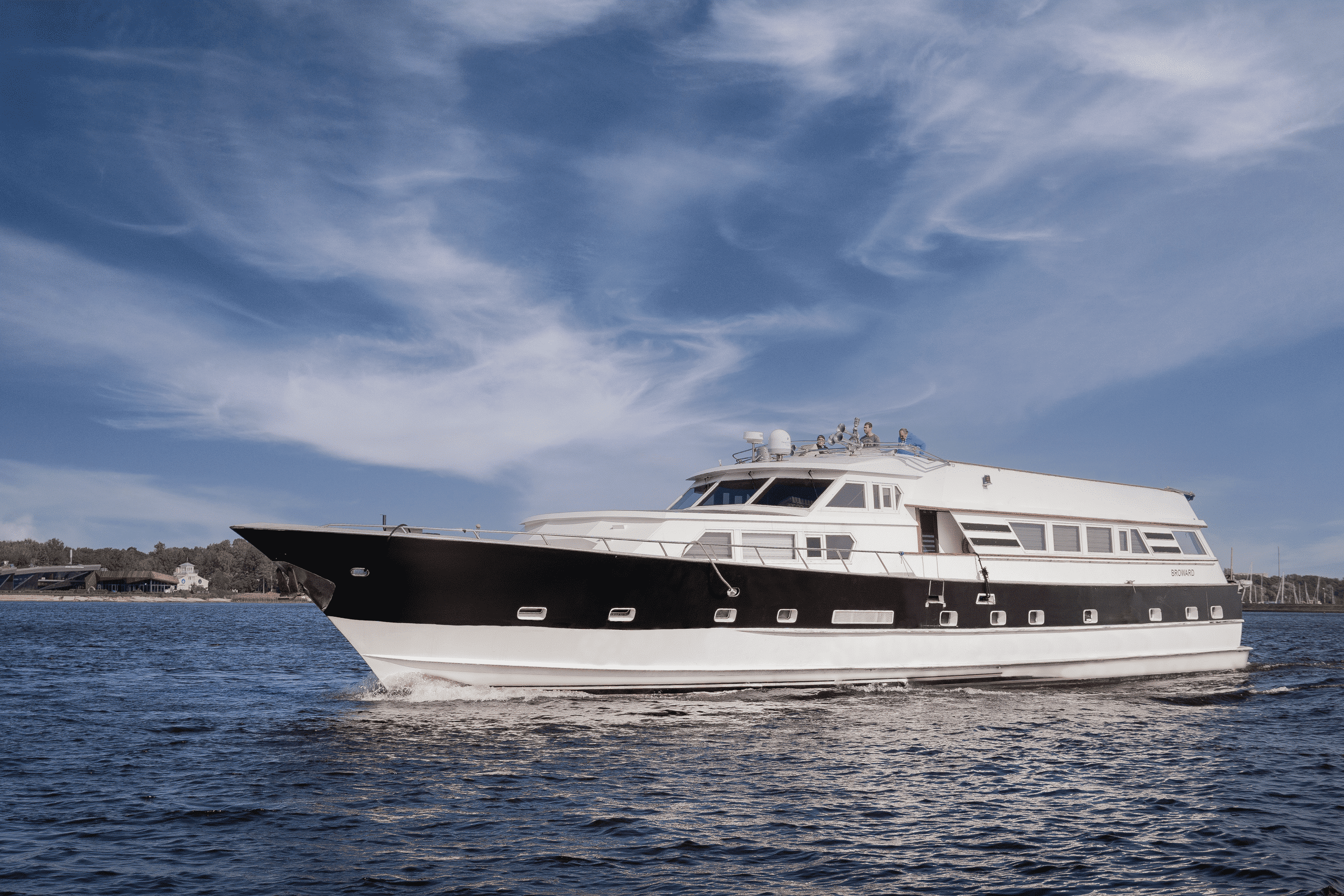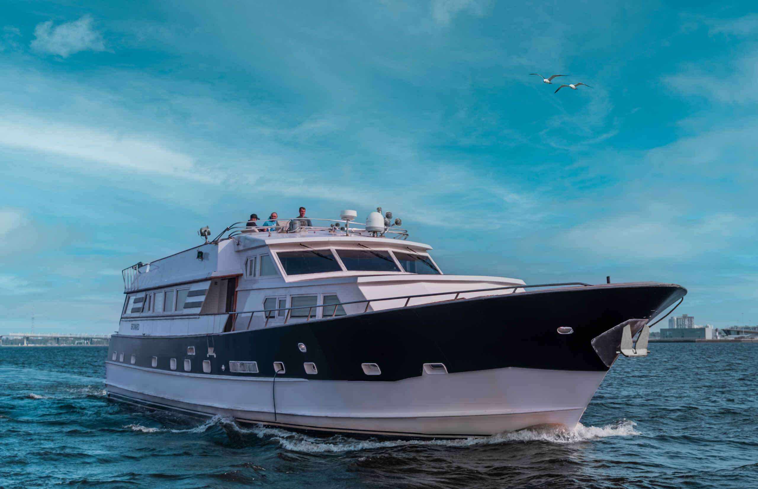 Спокойный приватный формат для вечернего выхода, ужина на воде и маршрута в сторону Финского залива. Корпус 66 ft дает более спокойную посадку и комфортную палубную зону.