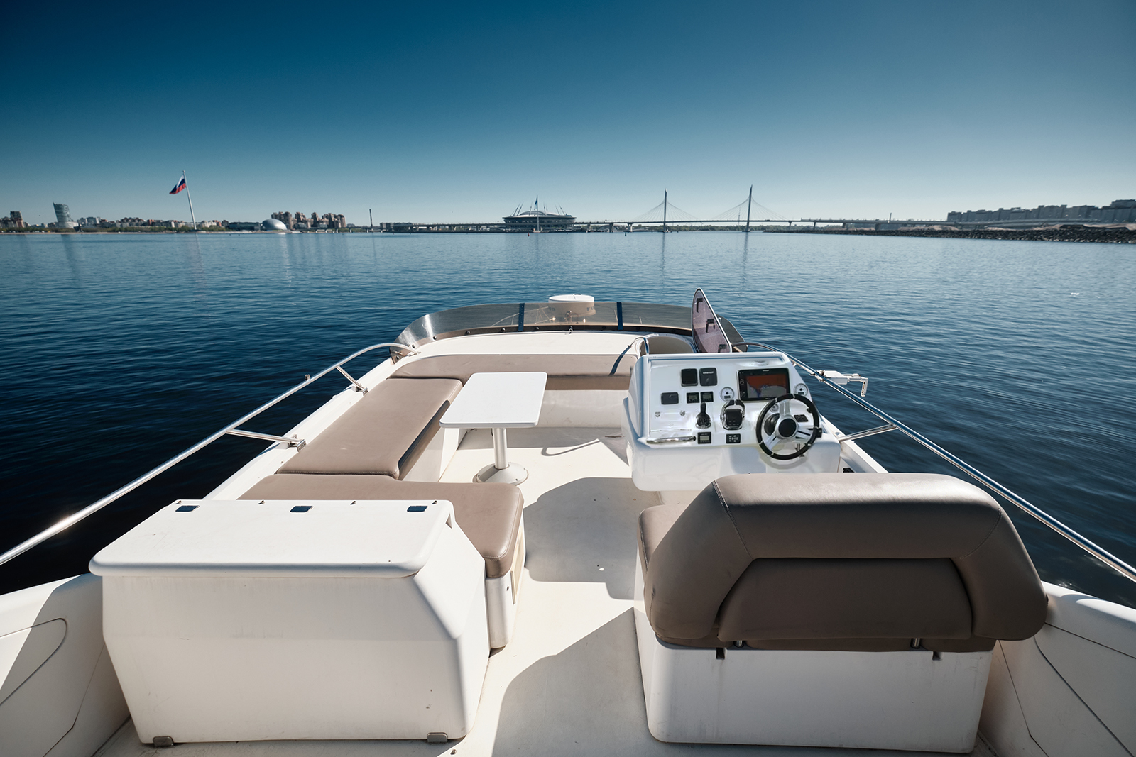 • Формат яхты дает больше приватности и подходит для спокойного отдыха, деловых встреч и выхода в сторону Финского залива.
