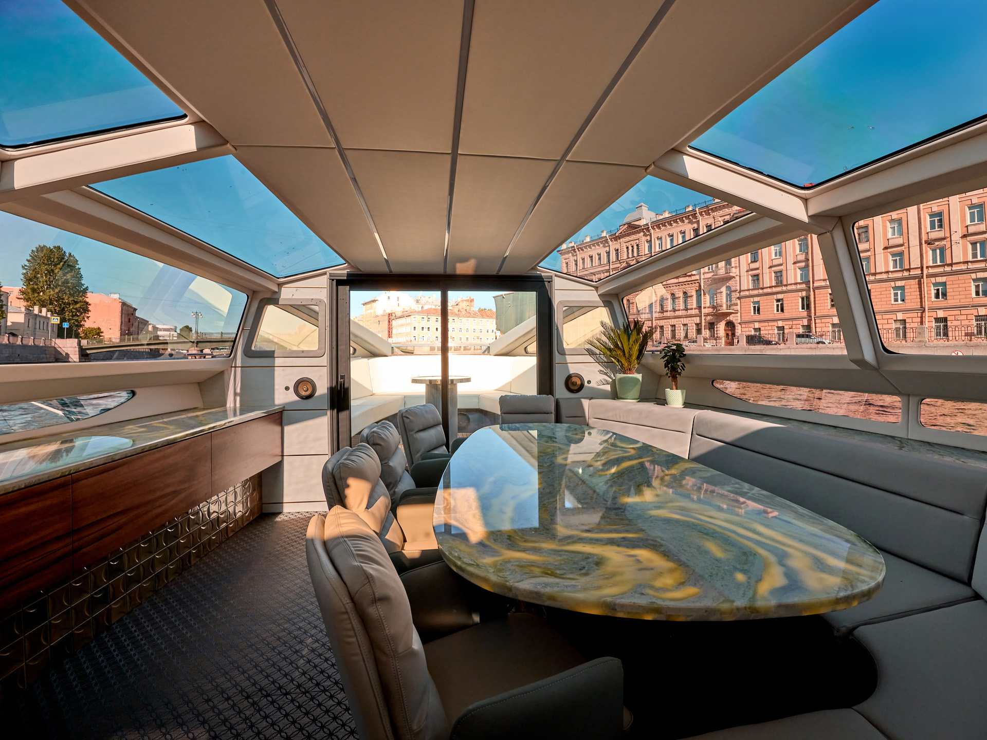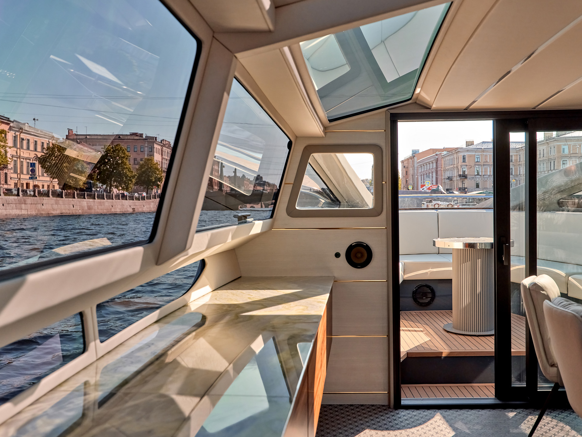• Формат яхты дает больше приватности и подходит для спокойного отдыха, деловых встреч и выхода в сторону Финского залива.