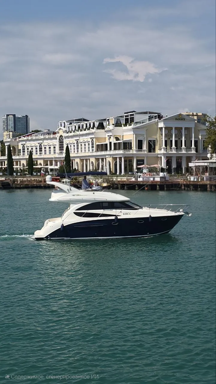 Комфортный катер для семейной прогулки, дня рождения или камерного события на воде в Сочи. Корпус 34 ft дает более спокойную посадку и комфортную палубную зону.